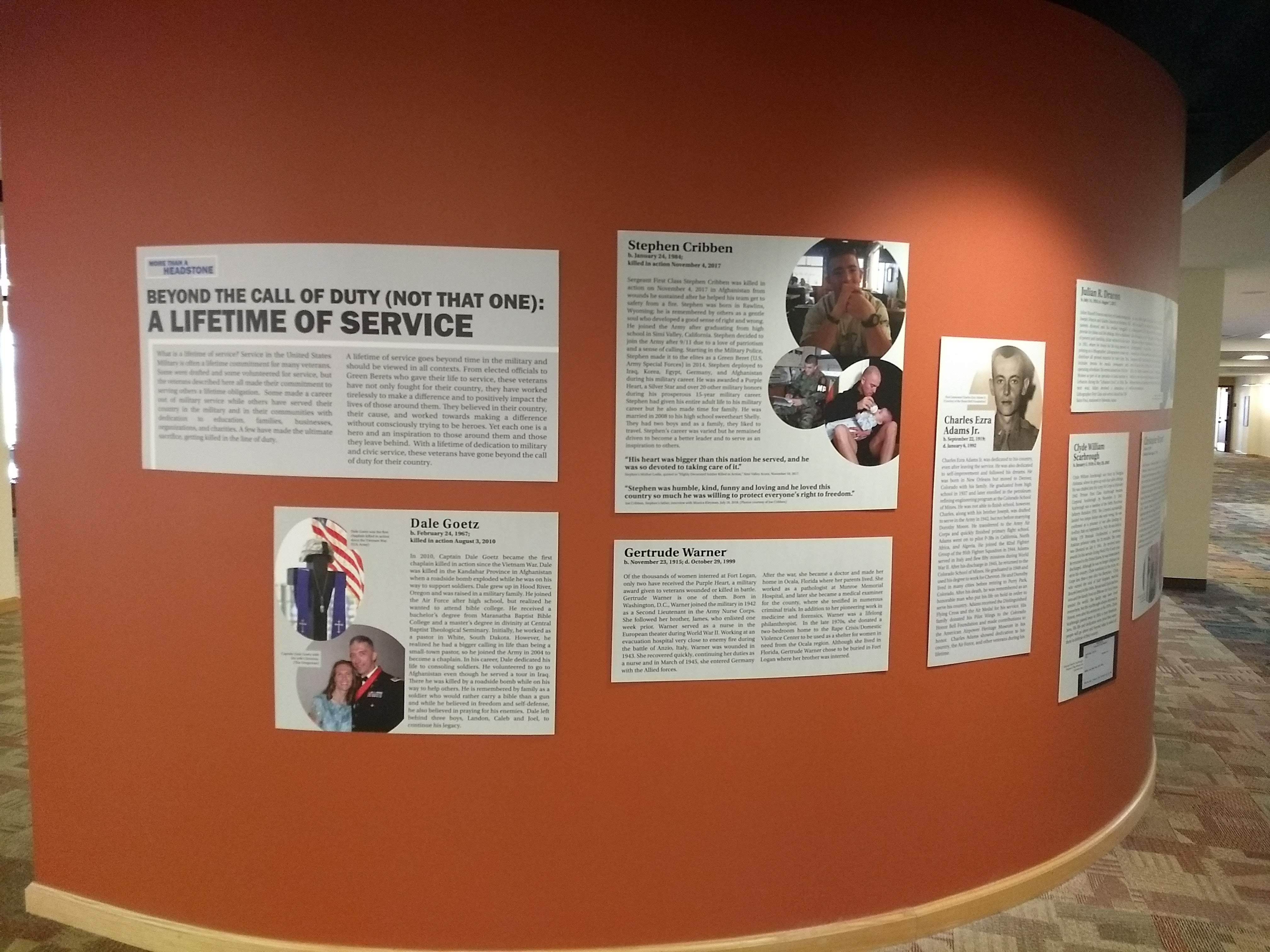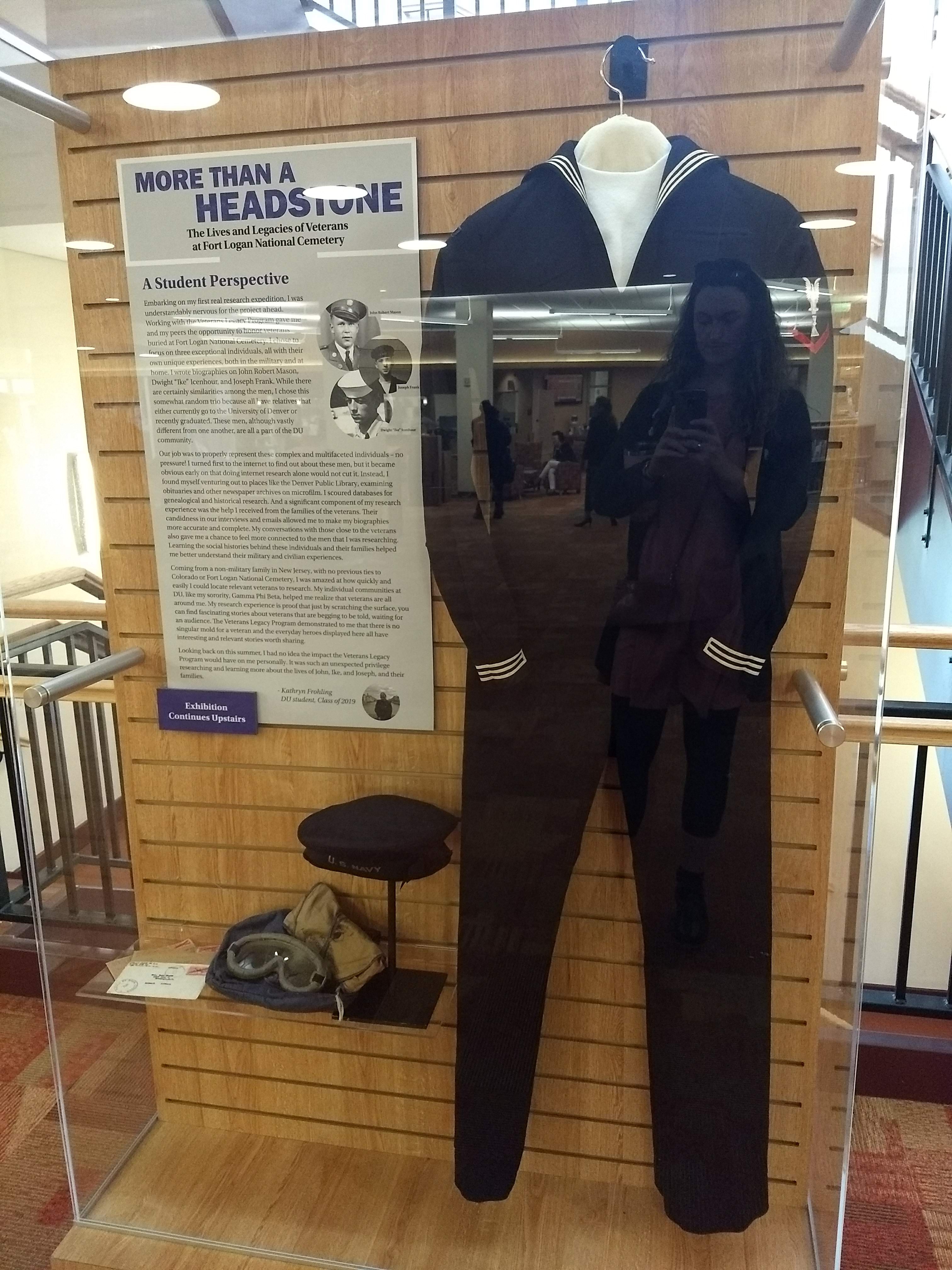 This project was initiated by the national Veterans Legacy Program. The program provides funding for organizations to research and bring to life the stories of deceased veterans who are buried in national cemeteries. This exhibit process of this project was unique in that I was able to be part of the initial student advisory phases, as well as the design and installation process despite these tasks being divided among two different organizations.