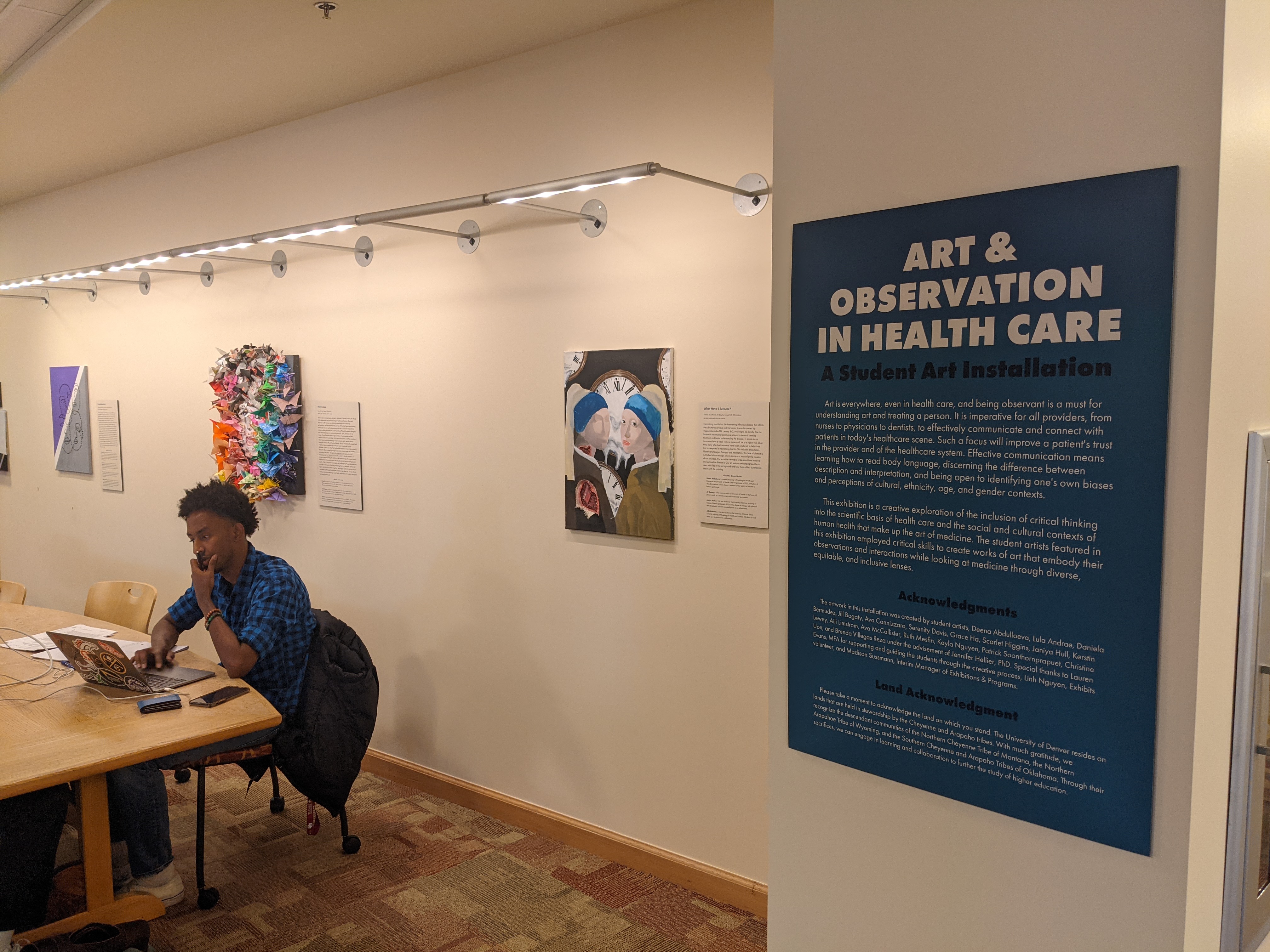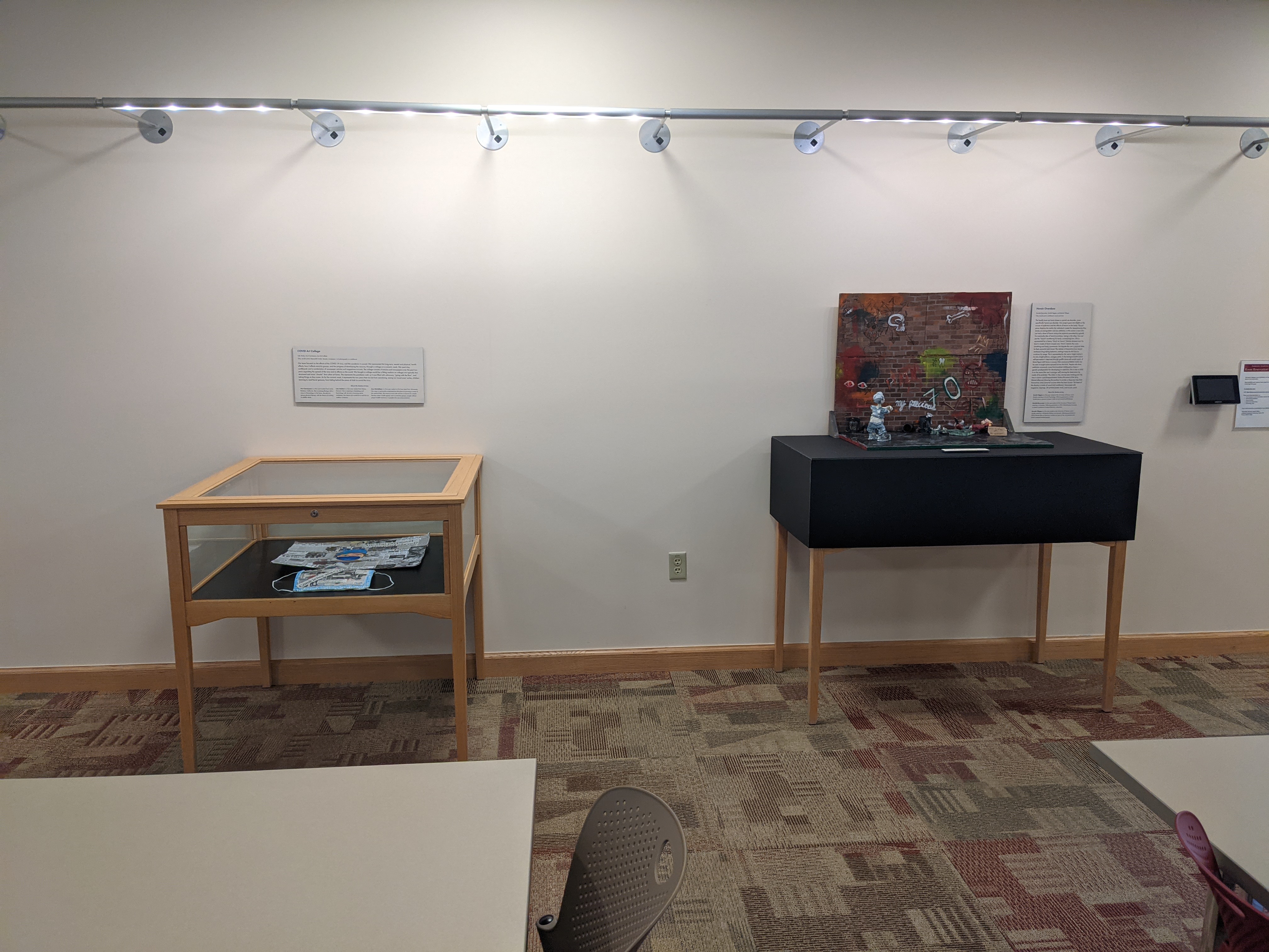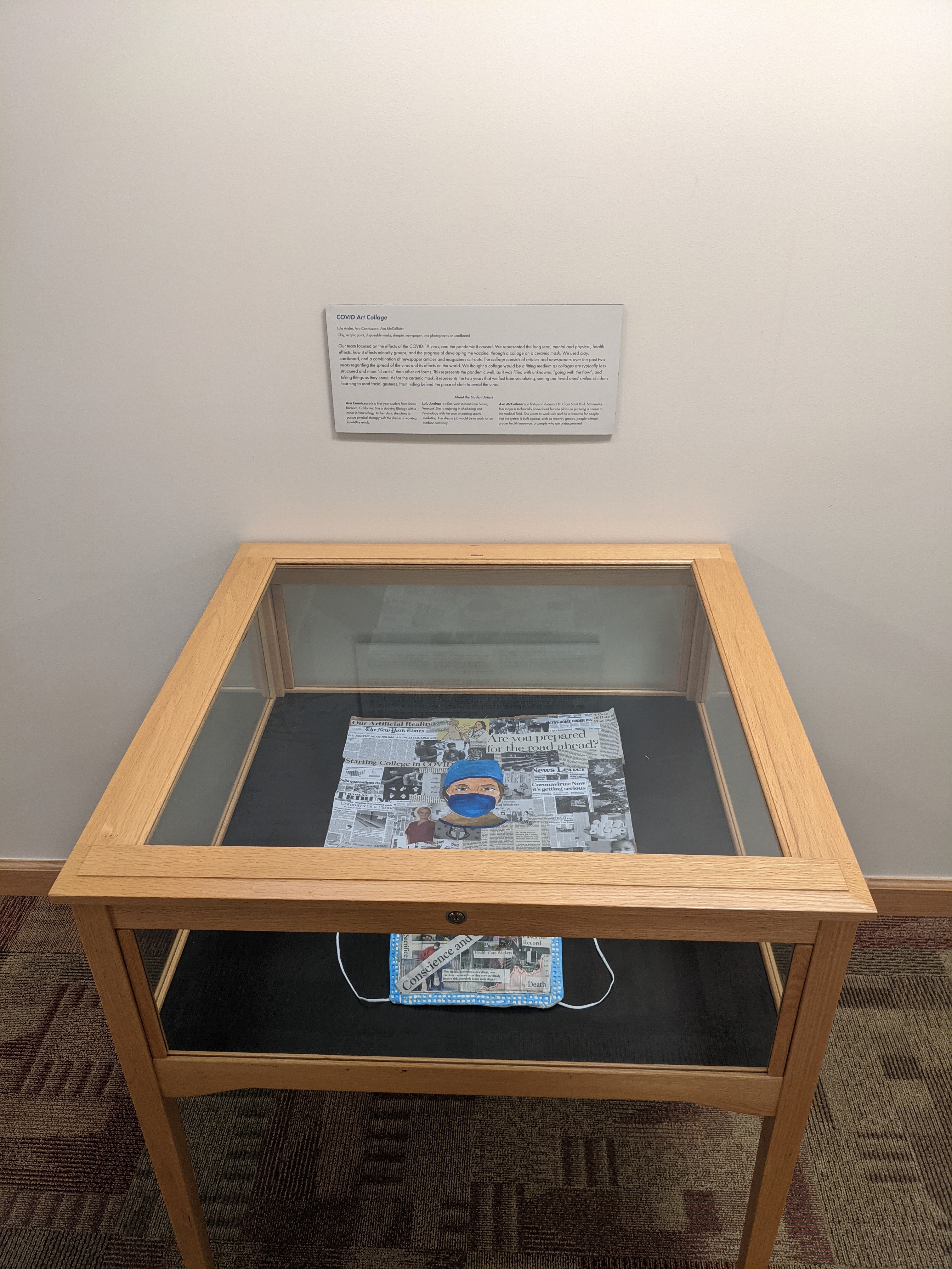 This exhibit was brought to me by a FSEM professor, and it exhibits the final projects for her class. My role was to install the artwork and host an opening reception for the students.
